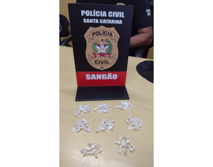 Um homem que usava tornozeleira eletrônica foi preso por tráfico de drogas nesta terça-feira, dia 23, no município de Sangão. A prisão ocorreu quando a DPMu de Sangão, com o apoio dos policiais civis da DPCo de Jaguaruna e dos policiais da operação veraneio de Jaguaruna, canil COPC e SAER estavam em operação na região quando avistaram um homem dispensando um pacote em uma casa.