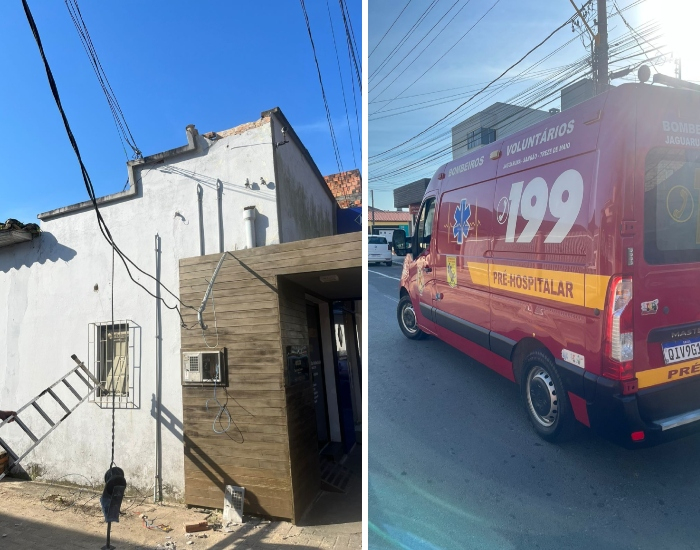 BVJ/Divulgação/Folha Regional Um homem de 36 anos sofreu ferimentos após cair de cerca de três metros de altura nesta quinta-feira, dia 6. O acidente ocorreu na Rua Ernesto Lacombe, no Centro de Jaguaruna.