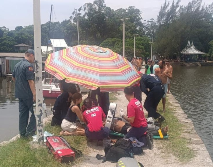 CBMSC/Divulgação/Folha Regional Um homem de 56 anos foi socorrido, após sofrer afogamento grau 6, com parada cardiorrespiratória, neste domingo, dia 18, na lagoa de Imaruí, em Imbituba.