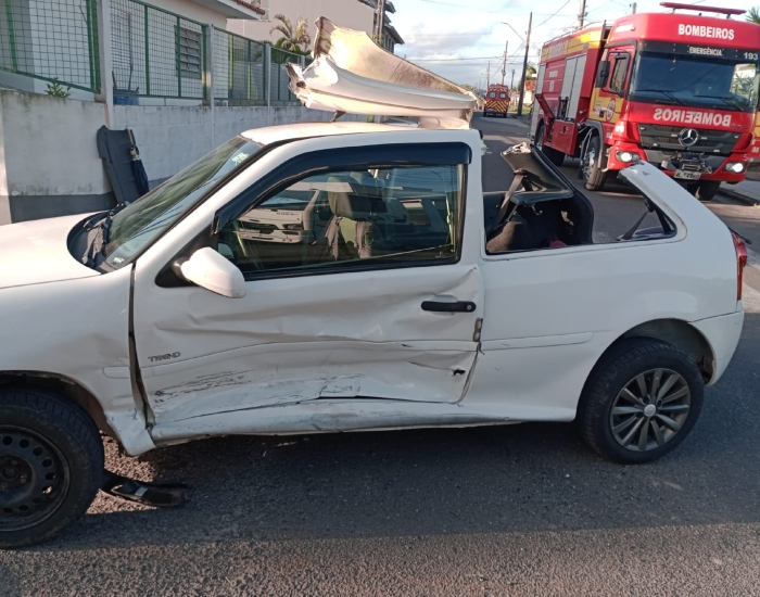 CBMSC/Divulgação/Folha Regional Uma colisão lateral entre dois automóveis, um VW Gol e um Ford Fox branco deixou um senhor de 61 anos ferido. O acidente ocorreu neste domingo, dia 19, na Rua Gonçalves Dias, no bairro Caçador, em Capivari de Baixo.