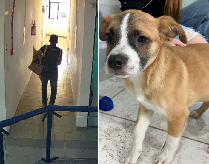 PCSC/Divulgação/Folha Regional Um homem foi indiciado pelo crime de maus-tratos a animais domésticos após abandonar dois filhotes de cães no banheiro da prefeitura de Laguna.