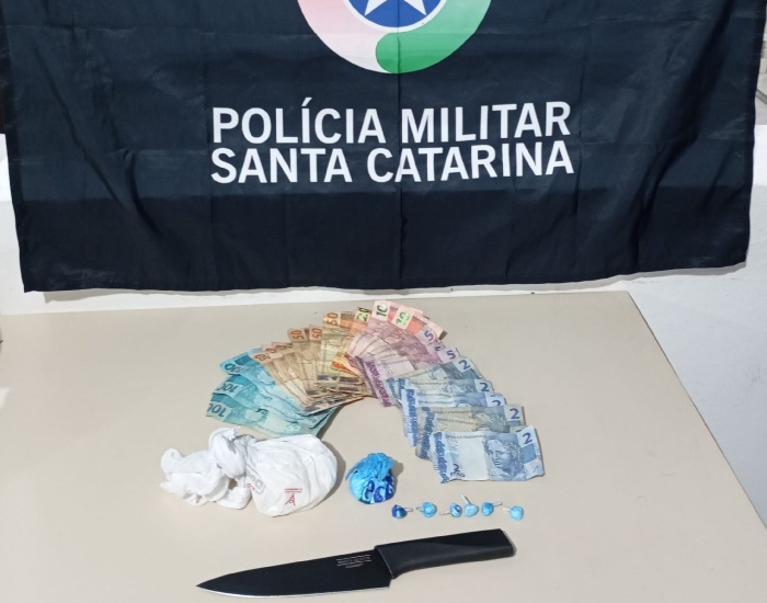 O homem estava com uma faca na cintura, dinheiro e porções de cocaína