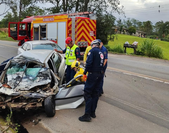 A Polícia Rodoviária Estadual e Militar também atenderam a ocorrência. Segundo testemunhas, o carro teria feito uma ultrapassagem proibida na rodovia.