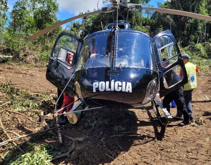 A vítima foi conduzida ao hospital de Tubarão pela aeronave do Sarasul