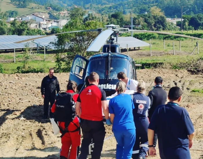A aeronave da Polícia Civil, tripulada pelos operadores do Saer e os profissionais de saúde do Sarasul foram acionados pela central do Samu para transferência da vítima do município de Braço do Norte para Tubarão.
