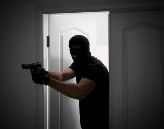 Homem armado com capuz arrombou a porta e anunciou o assalto