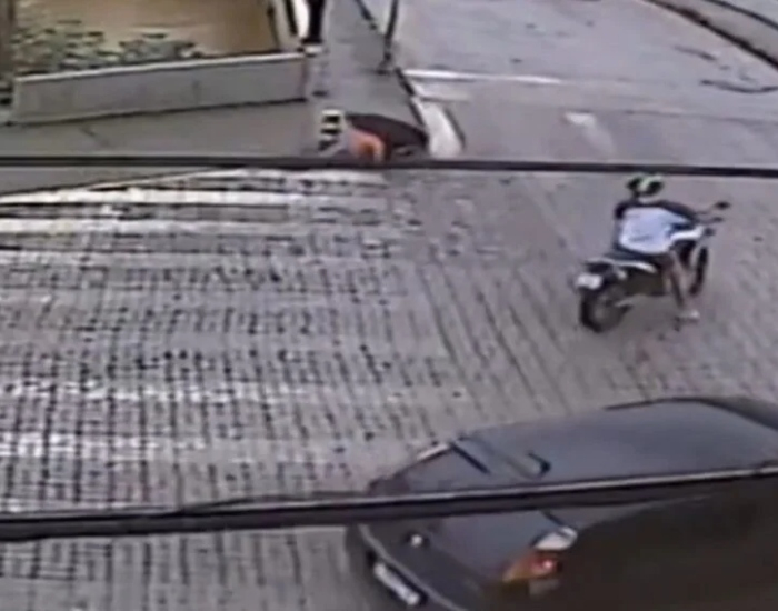 Incidente foi filmado por câmera de segurança. Vítima teve ferimentos leves