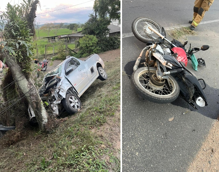 CBMSC/Divulgação/Folha Regional Um idoso de 79 anos morreu vítima de um grave acidente de trânsito ocorrido na noite desta sexta-feira (17), na SC-370, no bairro Pouso Alto, em Gravatal. Ele conduzia uma motocicleta Honda CG 160, que colidiu com um automóvel Chevrolet Montana, que capotou às margens da rodovia.