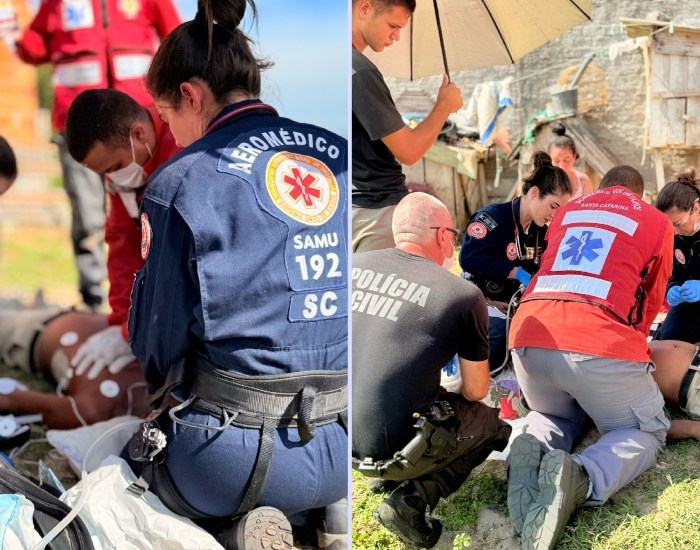 Após a chegada do aeromédico SAMU foi realizada intubação orotraqueal, medicações e massagem cardíaca por 40 minutos. Apesar das medidas de reanimação não houve retorno dos sinais vitais, sendo constatado o óbito às 11h15.