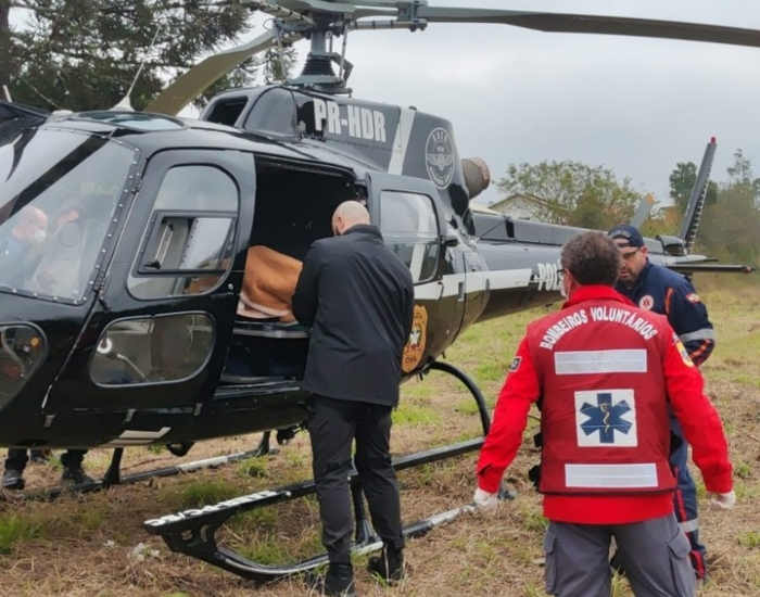 A aeronave do Serviço Aeromédico da Polícia Civil (Saer/Sarasul) foi acionada junto com as guarnições dos Bombeiros Voluntários e Samu.