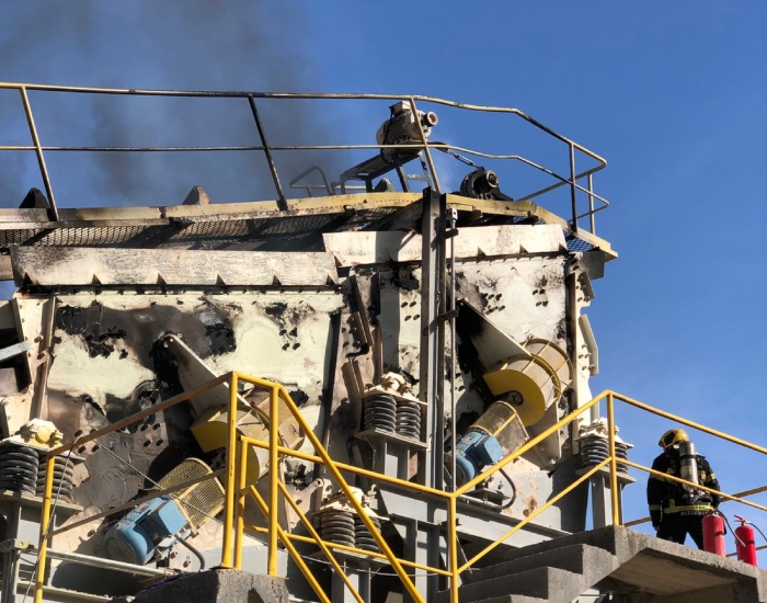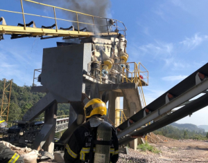 O fogo consumiu parte da esteira que leva minérios para o equipamento, além de partes emborrachadas em seu interior.