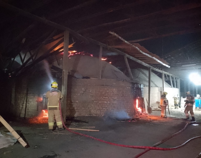 Bombeiros Voluntários de Jaguaruna/Divulgação/Folha Regional Um incêndio atingiu um dos fornos de uma cerâmica na localidade de Morro Grande, em Sangão. Os Bombeiros Voluntários foram acionados para atender a ocorrência por volta das 02h30 desta terça-feira, dia 21.