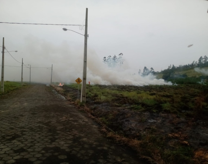 Ao chegar no local, constatou que se tratava de um incêndio em vegetação rasteira de pequenas proporções, porém com grande produção de fumaça que se alastrou para bairros próximos como Cristo Rei, Paulo Cruz, Centro e Morro da Cruz.