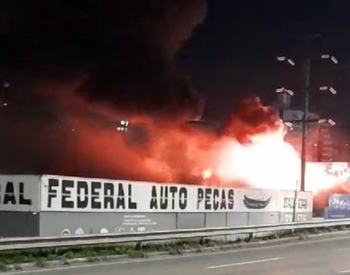 Um incêndio de grandes proporções atingiu uma lojas de autopeças, localizadas na Rua São Bento, no bairro de Capoeiras, em Florianópolis.