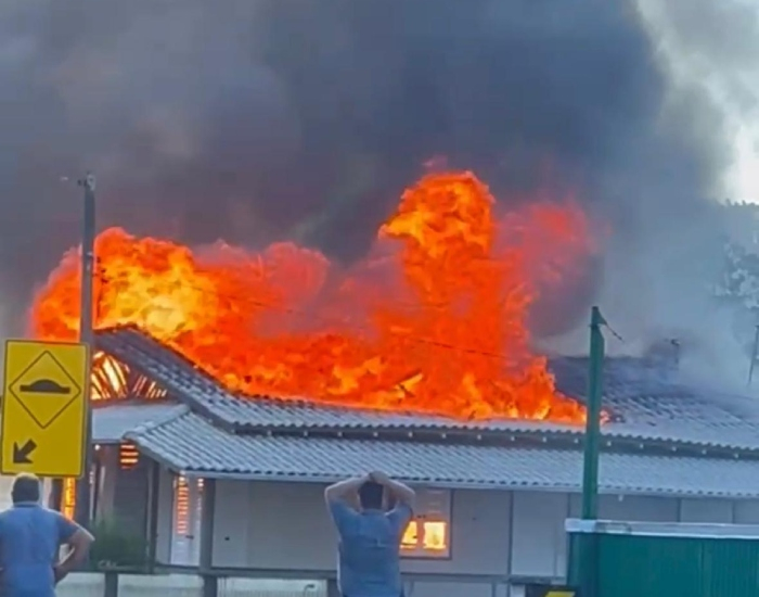 Divulgação/Folha Regional Uma residência foi destruída por um incêndio no final da tarde desta terça-feira, dia 27, na localidade de São Gabriel, em Treze de Maio. As chamas tomaram grandes proporções e chamaram a atenção de moradores no local.