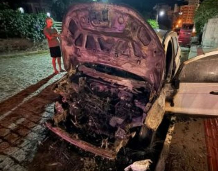 Foto: Corpo de Bombeiros/Divulgação Um incêndio em um veículo mobilizou o Corpo de Bombeiros na noite desta quarta-feira (4), por volta das 20h, na Rua Dr. Aurélio Rótolo, no bairro Mar Grosso, em Laguna.