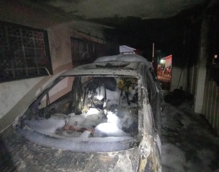 CBMSC Tubarão/Divulgação/Folha Regional Um incêndio resultou na morte de dois animais de estimação e destruiu um veículo e parte de uma residência na noite desta quinta-feira, dia 9, no bairro Monte Castelo, em Tubarão.