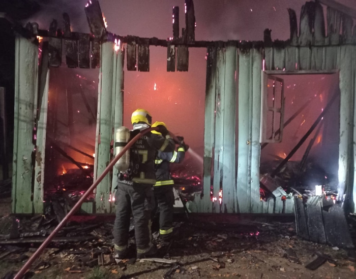 Uma residência de madeira de cerca de 58 metros quadrados foi totalmente destruída por um incêndio no bairro Passagem, em Tubarão.