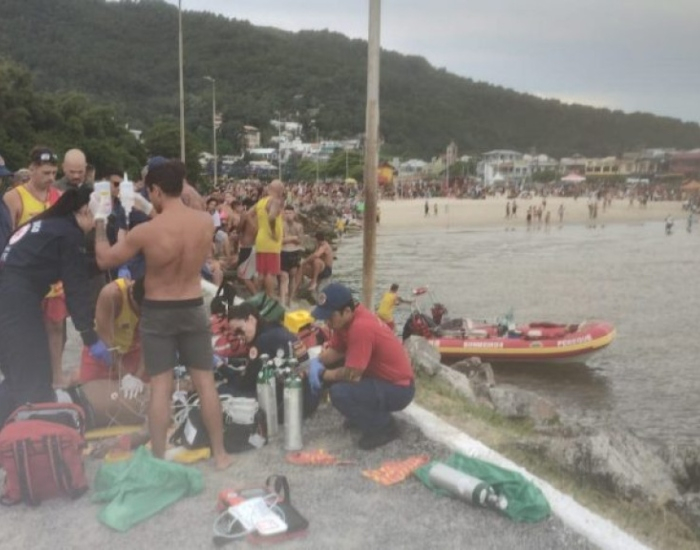CBMSC/Divulgação/Folha Regional Um jovem de 19 anos morreu afogado na Barra da Lagoa, em Florianópolis, na tarde deste domingo, dia 4. Ele foi atingido por um barco de pequeno porte no canal e chegou a ficar cinco minutos submerso pela água.