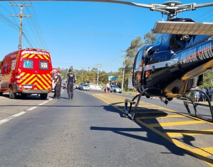 Já a caroneira, de 20 anos, encontrava-se em decúbito ventral sobre a via, inconsciente, com sinais vitais alterados, apresentando trauma cranioencefálico e politraumatizada, sendo atendida pelo Corpo de Bombeiros.