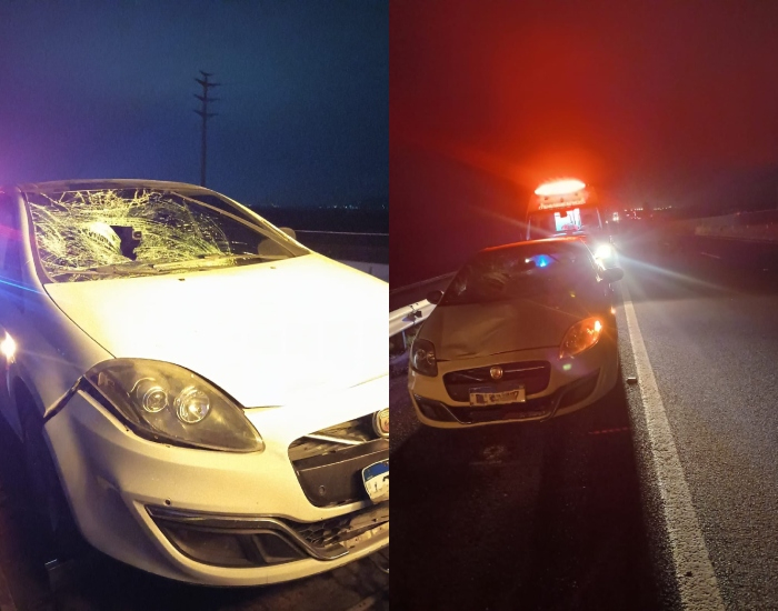 BVJ/Divulgação/Folha Regional Um jovem de 24 anos sofreu ferimentos após ser atropelado por um veículo Fiat Bravo na BR-101, sentido norte/sul, no trevo de acesso a Treze de Maio. O acidente ocorreu na madrugada desta sexta-feira, dia 11.