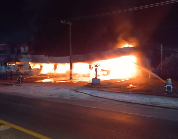 Um incêndio de grandes proporções destruiu uma loja de material de construção na madrugada desta quinta-feira, dia 5, na SC-445, em Içara.