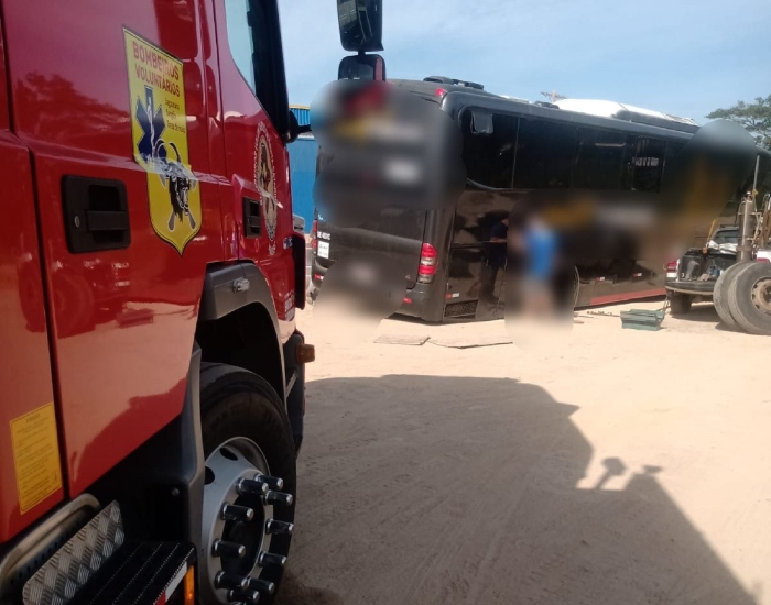 Um homem de 45 anos foi socorrido com dores intensas após um ônibus cair sobre suas pernas. O acidente de trabalho ocorreu nesta segunda-feira, dia 10, na Rodovia Mário Covas, na BR-101, na localidade de Morro Azul, em Jaguaruna.