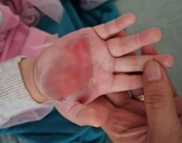 O ocorrido teria resultado em uma queimadura de grande extensão, causando o rompimento da pele de toda a palma da mão da vítima. Na manhã seguinte, a mulher teria informado o ocorrido ao pai da criança via WhatsApp.