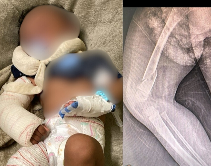 O bebê de 11 meses foi internado com fraturas graves em um hospital de Içara