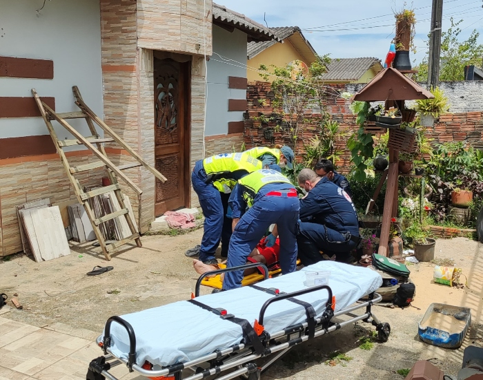 Um homem de 60 anos sofreu graves ferimentos em um acidente de trabalho nesta sexta-feira, dia 15. Ele estava no telhado de sua residência no bairro Tereza Cristina, em Içara, quando caiu de aproximadamente três metros de altura.
