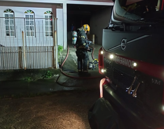 Um incêndio nos fundos de uma residência mobilizou o Corpo de Bombeiros de Tubarão na madrugada desta terça-feira, dia 17.
