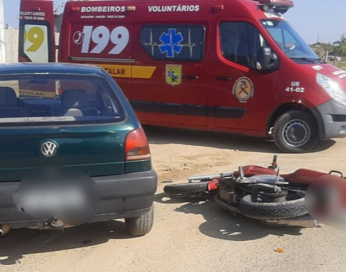 Testemunhas que estavam no local relataram à guarnição o motociclista foi arremessado e caiu sobre o capô do veículo após colisão.