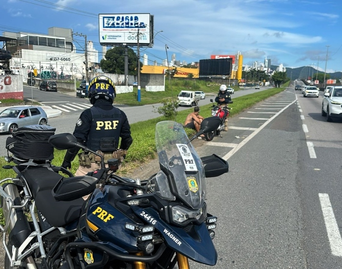 Ele foi abordado pelos agentes do Grupo de Motociclismo Regional (GMR) da PRF, que estão operando nesta região da BR-101 conhecida pelo trânsito frequentemente congestionado, especialmente na temporada de verão.