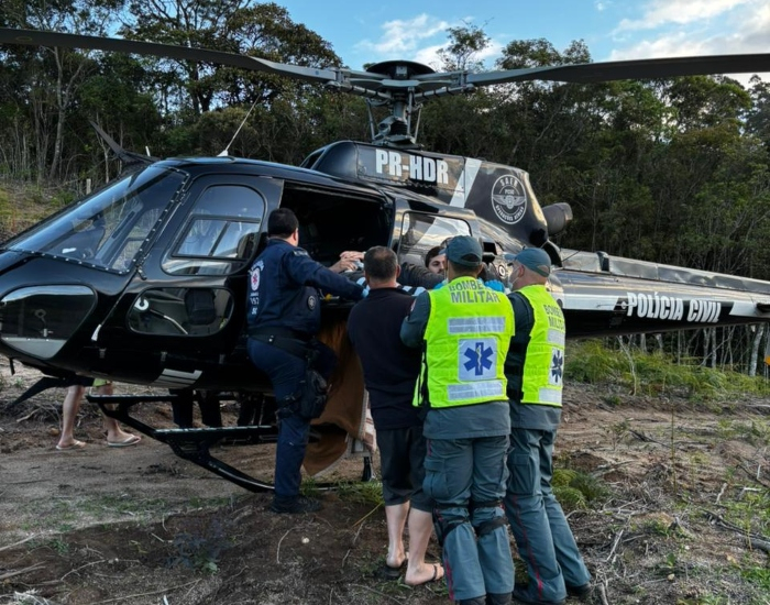 A equipe do Serviço Aeromédico (Saer) foi acionada para prestar apoio no resgate da vítima e transferência com auxílio do helicóptero até o hospital para atendimento, no local de difícil acesso.