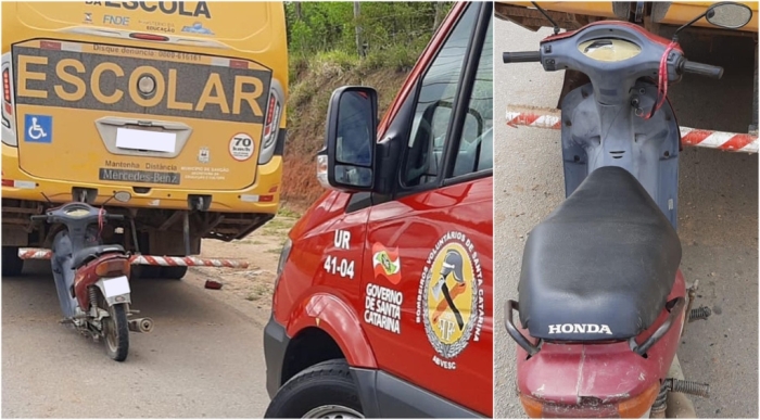 Os Bombeiros Voluntários de Jaguaruna foram acionados nesta terça-feira, dia 23, para atender uma ocorrência de acidente de trânsito. Uma colisão entre uma motoneta Honda Biz e um ônibus escolar foi registrada na Rua São João Batista, no Distrito de Morro Grande, em Sangão.