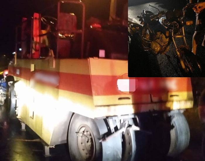 Um motociclista de 27 anos sofreu ferimentos após colidir contra uma máquina utilizada na obra de pavimentação asfáltica que estava estacionada à beira da Estrada Geral, na localidade de Areinha, em Sangão.