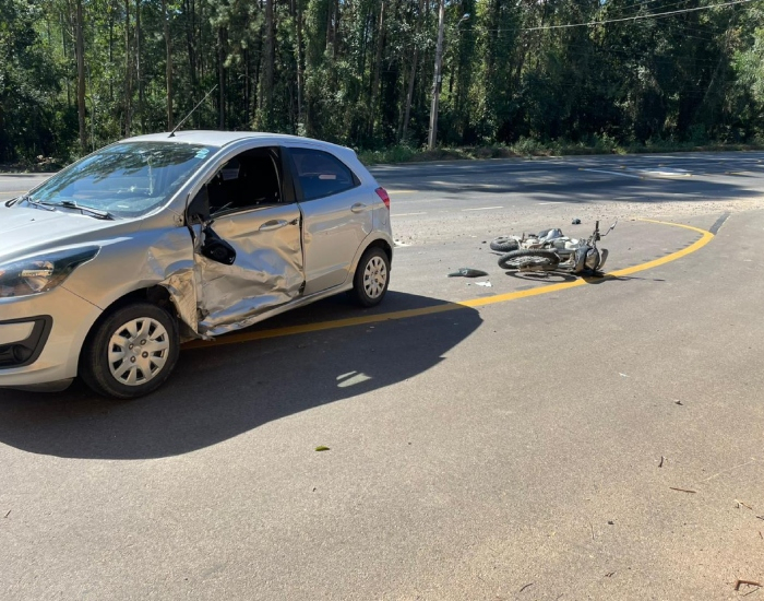 O Corpo de Bombeiros Militar de Orleans atendeu a ocorrência sendo uma colisão lateral envolvendo um automóvel Ford Ka, conduzido por uma mulher, e uma motocicleta conduzida por um homem.