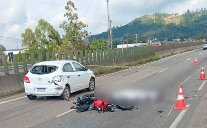 Foto: Divulgação Um motociclista morreu em um acidente de trânsito na manhã desta quarta-feira, 18, na BR-101, em Capivari de Baixo. Ele pilotava uma Yamaha YBR 150 com placa de Imbituba.