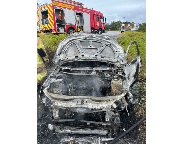 Em seguida, o veículo foi destruído por um incêndio sendo retirado da pista. Os Bombeiros Voluntários fizeram o combate às chamas. O veículo é o mesmo que havia se envolvido em uma colisão contra uma motocicleta momentos antes, no mesmo local.