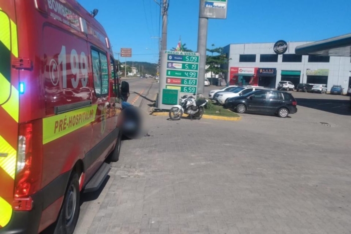 A vítima foi imobilizada e encaminhada ao hospital pelos Bombeiros Voluntários