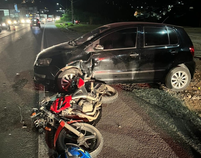 Uma colisão lateral entre um carro e uma motocicleta deixou um homem com diversas fraturas na noite desta sexta-feira, dia 28. O acidente ocorreu no bairro Murialdo, em Orleans, na SC-108.