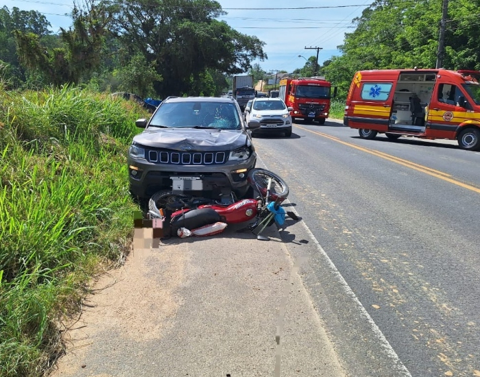 O Corpo de Bombeiros Militar atendeu um acidente de trânsito envolvendo um veículo Jeep Compass e uma motocicleta Honda CG, na tarde desta quinta-feira, dia 14. A colisão ocorreu na SC-370, no bairro Alto Travessão, em Braço do Norte.