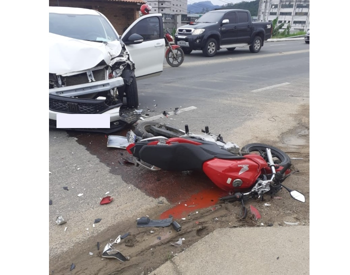 Segundo informações da Polícia Militar Rodoviária (PMRv), a condutora do Fiat Argo foi fazer a conversão e acabou cortando a frente do motociclista. O Corpo de Bombeiros foi acionado no local e encontrou a vítima com fratura aberta, lesões no abdômen e escoriações pelo corpo.