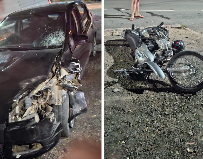 CBMSC/Divulgação/Folha Regional Uma colisão entre um carro e uma motocicleta foi registrada na noite desta sexta-feira, dia 27, na Rodovia Genésio Mazon, em Urussanga. O condutor da motocicleta foi encontrado inconsciente, sem capacete, com politraumatismo, fraturas e hemorragia.