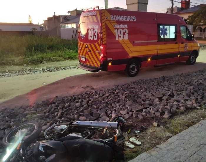 Um motociclista de 27 anos sofreu grave traumatismo cranioencefálico após queda de moto em Tubarão. O acidente ocorreu na manhã deste sábado, na Rua dos Ferroviários, no bairro Oficinas.