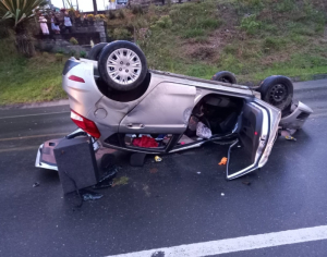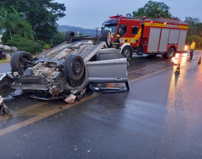 Uma mulher de 22 anos foi resgatada pelo Corpo de Bombeiros na manhã desta quinta-feira, dia 2, após capotar o veículo Ford Fiesta, com placas de Urussanga. O acidente ocorreu na SC-108, no bairro São Simão, em Criciúma.
