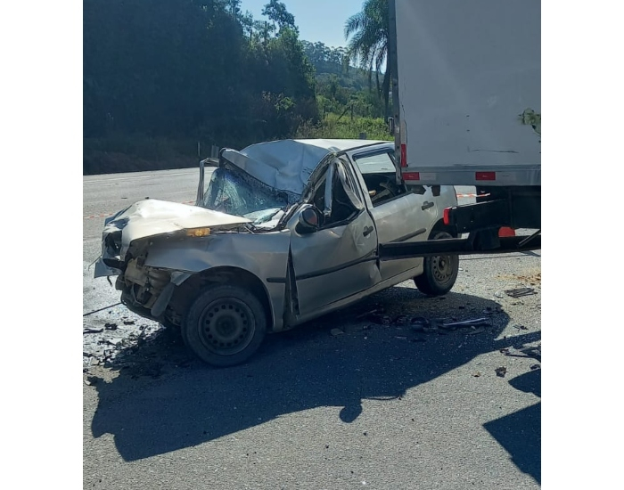 Um motorista de 25 anos morreu vítima de um acidente de trânsito na tarde deste sábado, dia 29. Ele conduzia um veículo Volkswagen Gol prata quando colidiu na lateral de um caminhão Volvo VM270 branco.