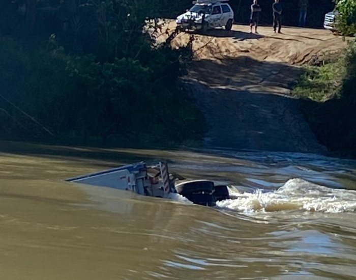 Ao iniciar a travessia, a roda dianteira esquerda do caminhão caiu para fora da ponte, provocando a queda do veículo no rio. A guarnição registrou um boletim de ocorrência e tomou as devidas providência para a retirada do caminhão da água.