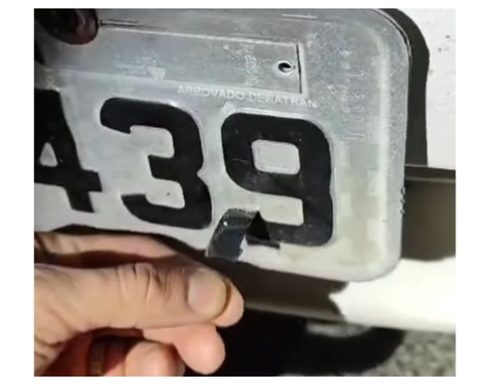 Na abordagem, os policiais perceberam que a placa do automóvel havia sido adulterada, sendo que os números da placa eram 5439 (verdeira) e estavam com uma fita isolante mudando o final 9 para 8, ficando 5438 (adulterada).