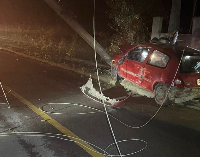 Por volta das 23h40, um veículo Renault Clio com placas de Imbituba bateu frontalmente em um poste de energia.